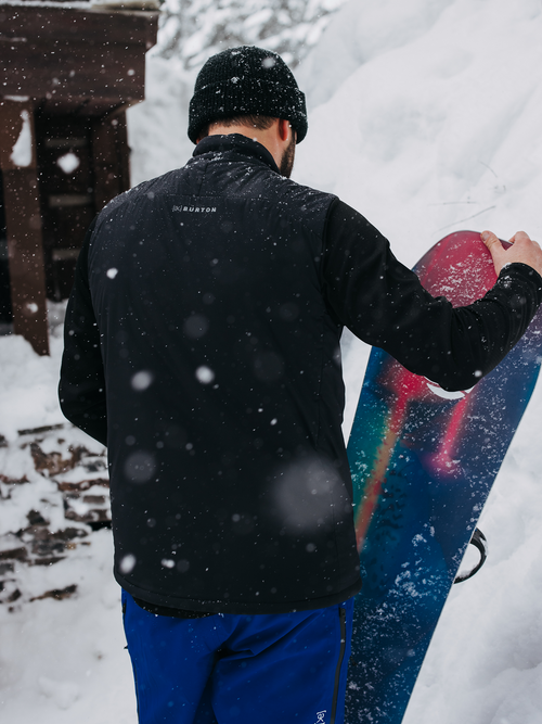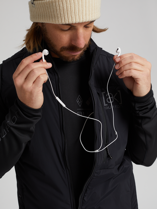 Shed layers for the climb. Add layers for the descent. Simplify your splitboarding program with the men's Burton [ak] Helium Stretch Insulated Vest. It's the lightweight layer you can wear on the up and the down. And when the sun shines and the temps rise, it packs into its own pocket for easy stowing.