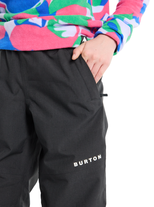 Let the session commence. The kids' Burton Melter 2L Pants are made with park lapping and milder days in mind plus all the good times that come with 'em. A simple elastic boot gaiter can go over boots or jogger style on top of the cuff. Don't let their lightweight design fool you, they're made for keeping young rider fly and dry.