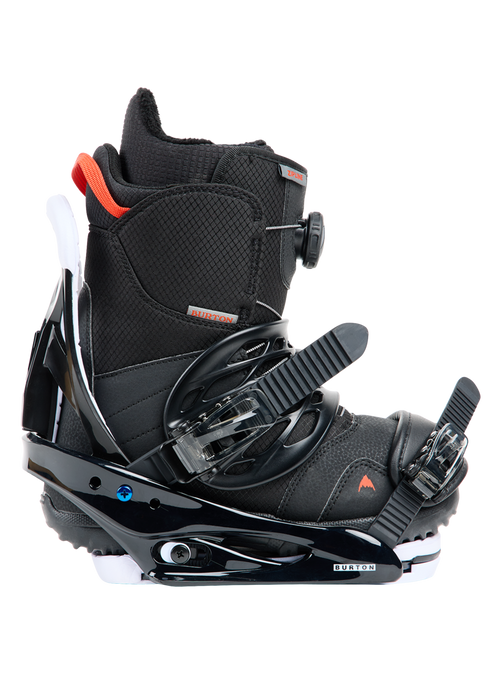The kids' Burton Mission Smalls Re:Flex Snowboard Binding offers a softer flexing, zero-compromise package for dependable all-terrain riding. Ergonomic, team-designed hi-backs join forces with pro-grade straps and plenty of cushioning to give kids the comfort and performance required for a full day on the mountain. The Re:Flex baseplate unlocks the board's true flex and feel in ways no traditional disc binding can, in a package compatible with all major snowboard mounting systems.