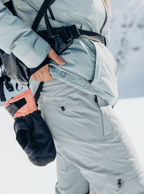 Lift laps, peak bagging, and powder stashes. You've got a busy a season ahead. The women's Burton [ak] Summit GORE-TEX Pants are decked out with proven weather protection and the little details that make ambitious riding days go smoothly, so you can get after it in all conditions knowing you'll be warm and dry from start to finish. Lace up your boots, zip up your shell, and get after it.
