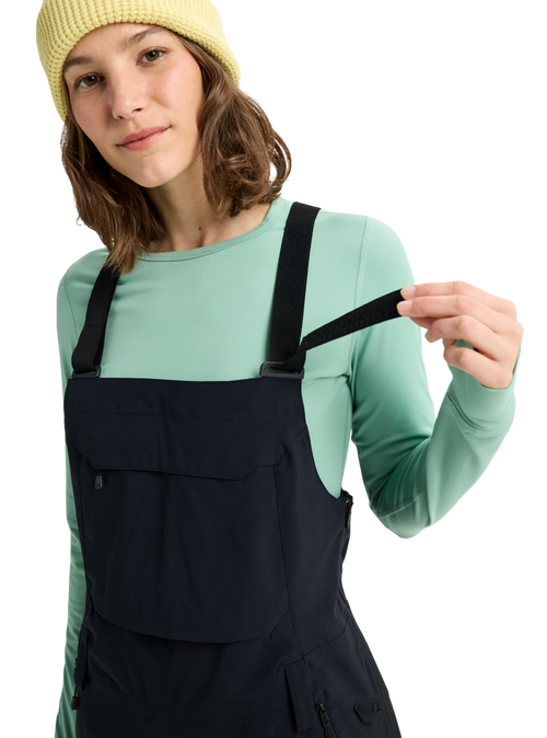 Technical and versatile with a more tailored fit, the women's Burton Reserve 2L Stretch Bib Pants are the bibs you can build your winter layering system around. Cut for a trim chino-like fit when compared to our regular cut, they use stretch fabric to maintain the mobility to twist and flex without restriction. Fully-taped seams and two-layer 20k/20k storm protection make for a warm, dry world when paired with the base layer of your choice. In addition to the extra coverage of bibs, a full package of rider-designed features offers all the venting, adjustability, and functional pocketing you need to dial in your comfort on the mountain.