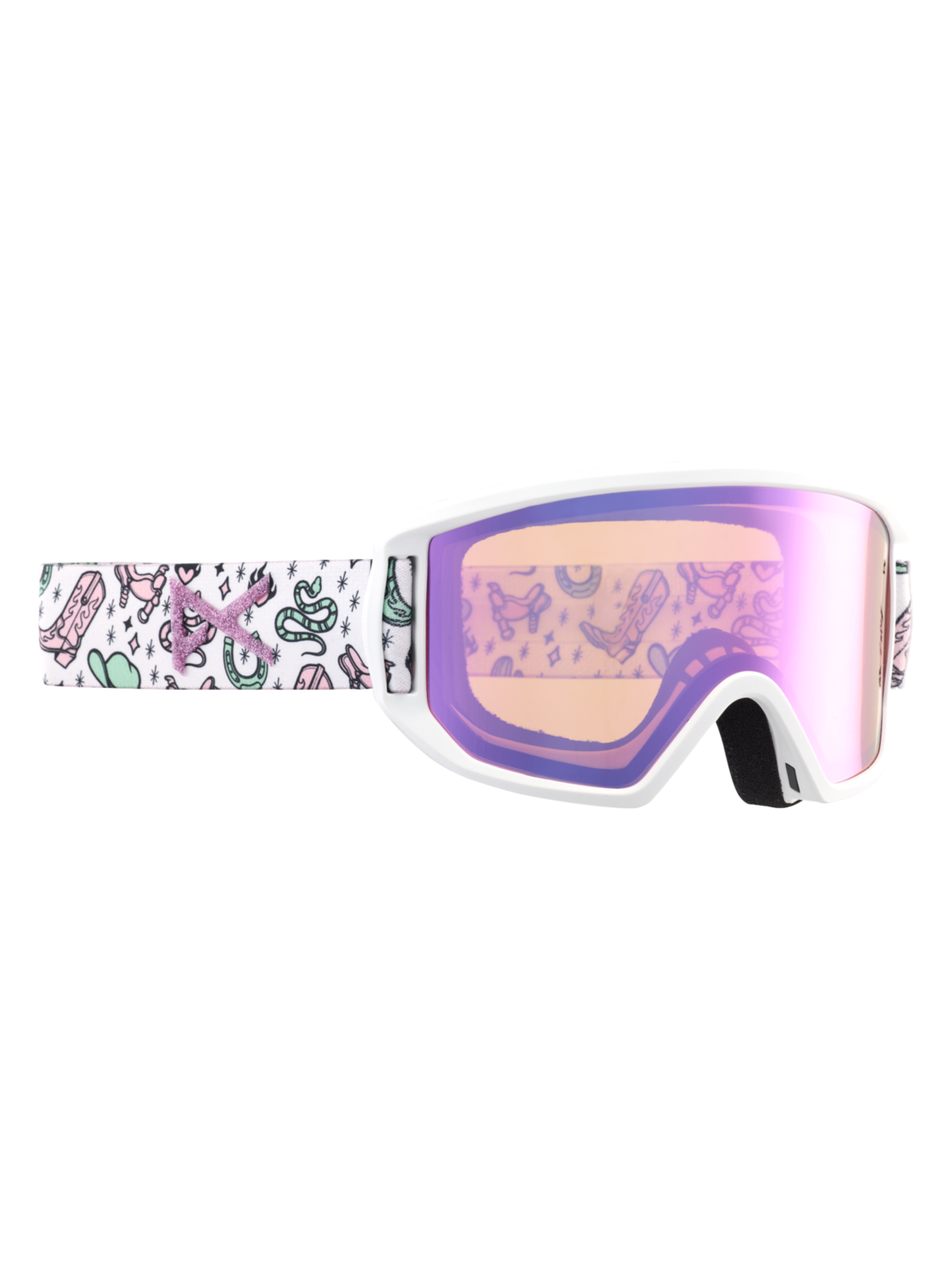 The kids' Anon Relapse Jr. Goggles feature our exclusive magnetic face mask integration (MFI®) for seamless coverage from snow, wind, and sun when used with our compatible hoods and face masks. A cylindrical lens maximizes the field of view, while full-perimeter venting ensures maximum airflow for clear, fog-free clarity in all conditions. They are compatible for wearing over eyeglasses and include an MFI face mask and a microfiber bag for storage and lens cleaning.