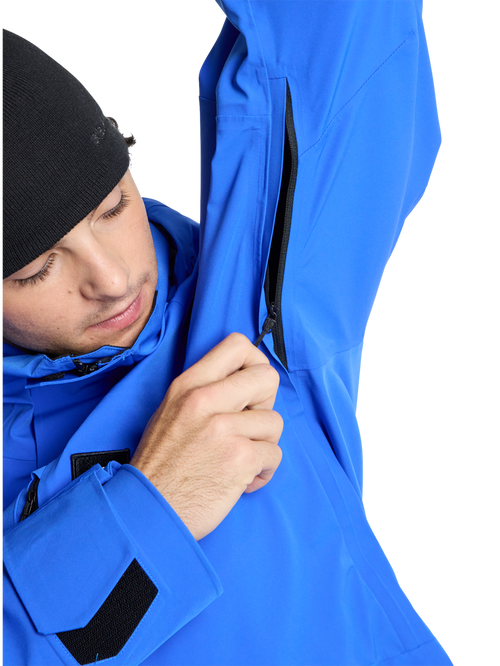 Snacks, music, cash. It's all within easy reach for smooth days on the mountain. An extra long water-resistant pocket on left chest includes an insulated sleeve to secure your phone and extend battery life.