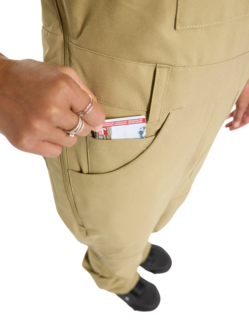 A slim fit and rider-designed details like a stretch back panel, a zippered drop seat, thigh vents, adjustable suspenders, and fully taped seams add up to more riding and less fiddling.