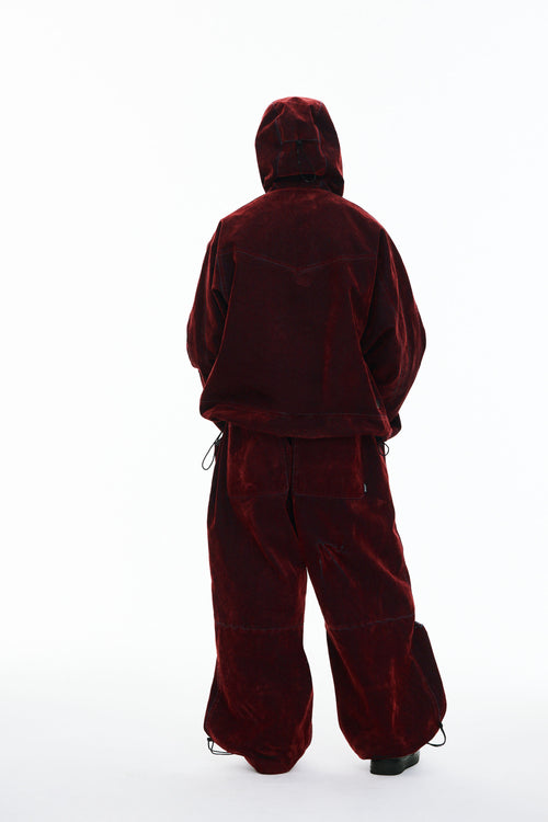Streetwear meets technical design in the DSXBS Super Wide Pintuck Wax Real Denim Pants. Made from 100% cotton denim with a daily waterproof coating inspired by umbrella fabric, these pants are built to handle light rain while keeping their premium feel. The waxed Worn Red finish adds texture and depth, giving a lived-in yet elevated look. With structured pintuck lines and a super-wide silhouette, they bring bold volume and effortless edge to any fit.