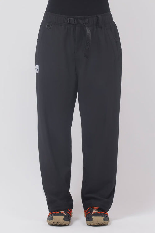 The stretchy material allows full freedom of movement while maintaining a clean silhouette that transitions smoothly from outdoor action to indoor downtime. Features include an elastic waistband with an integrated adjustable mini belt, a D-ring gear loop, and two zippered pockets for on-the-go essentials.