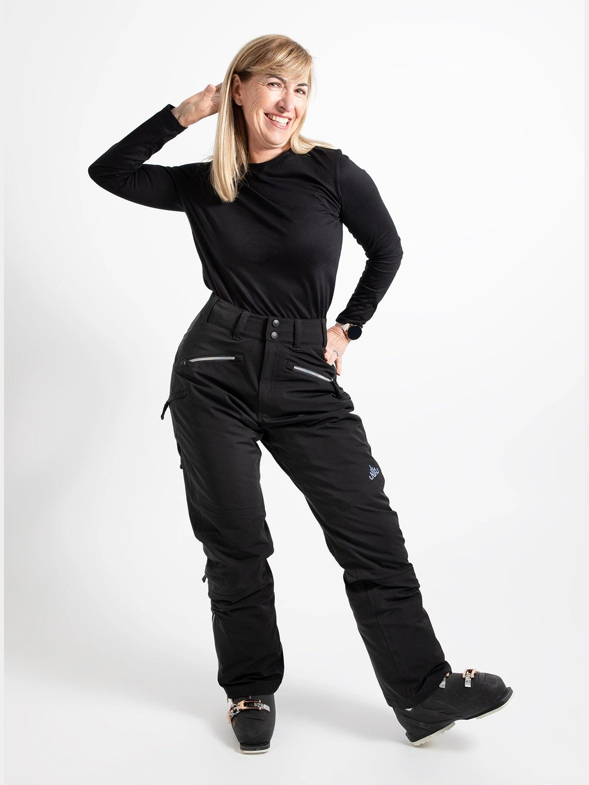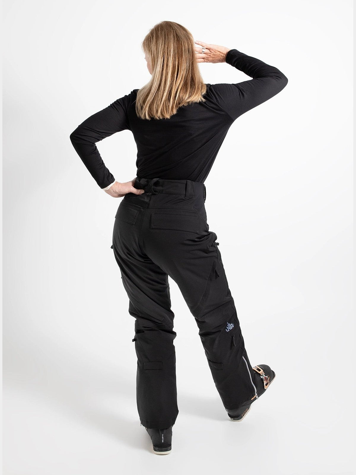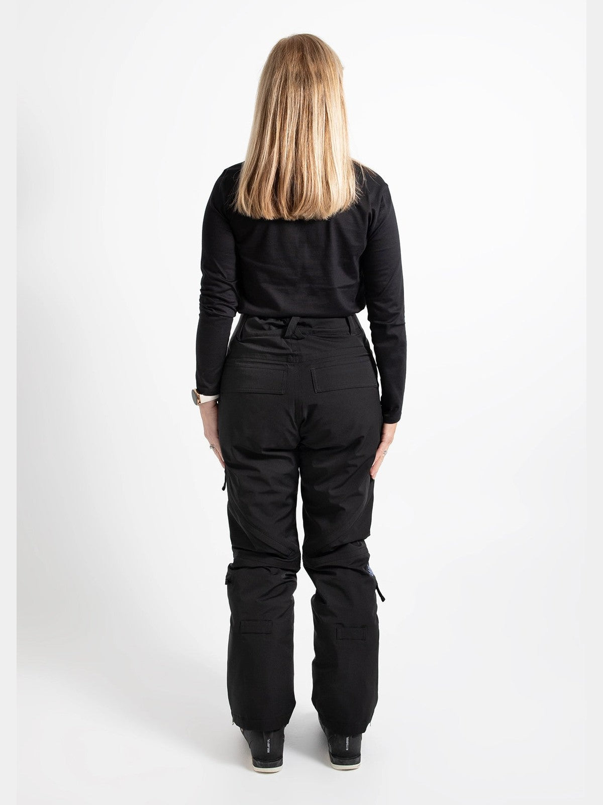 ● Mid-high rise waist (higher on the back) to keep snow out