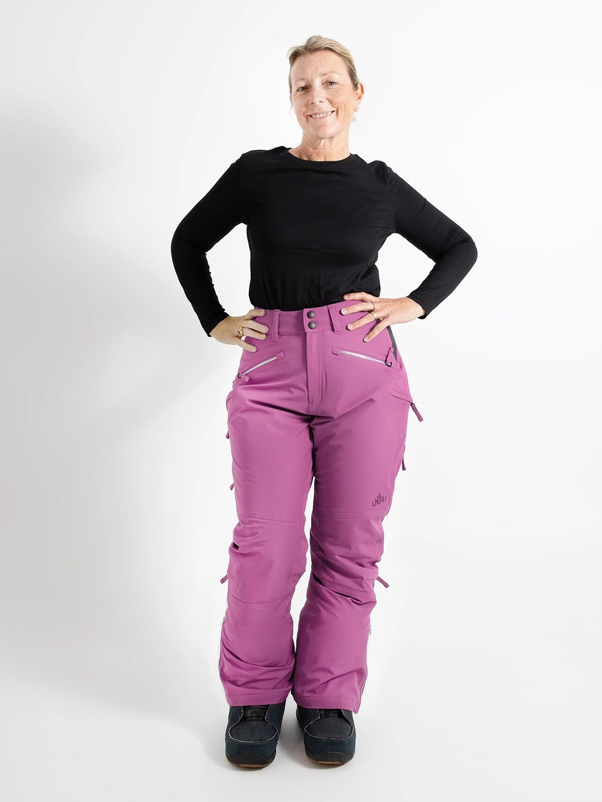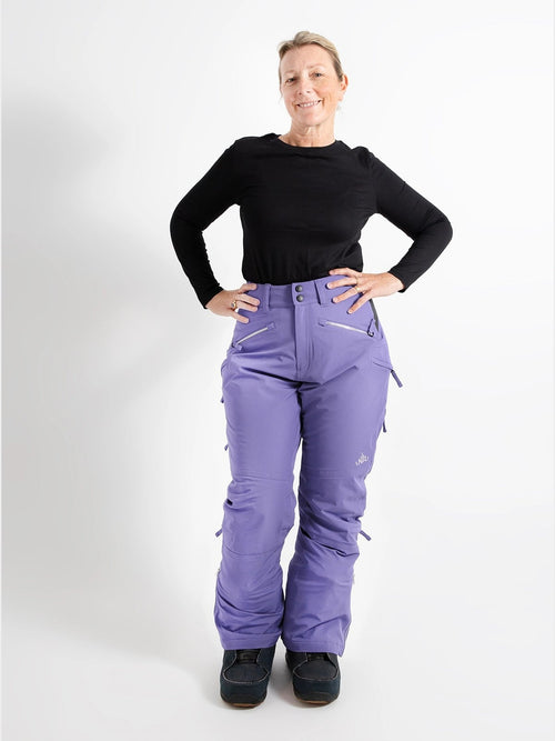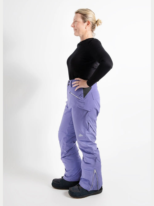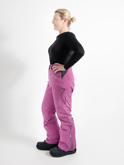 Our Zali Snow Pant is made to fit bodies with a waist narrower than their hips, and needing extra room for fuller thighs and curvier bottoms.