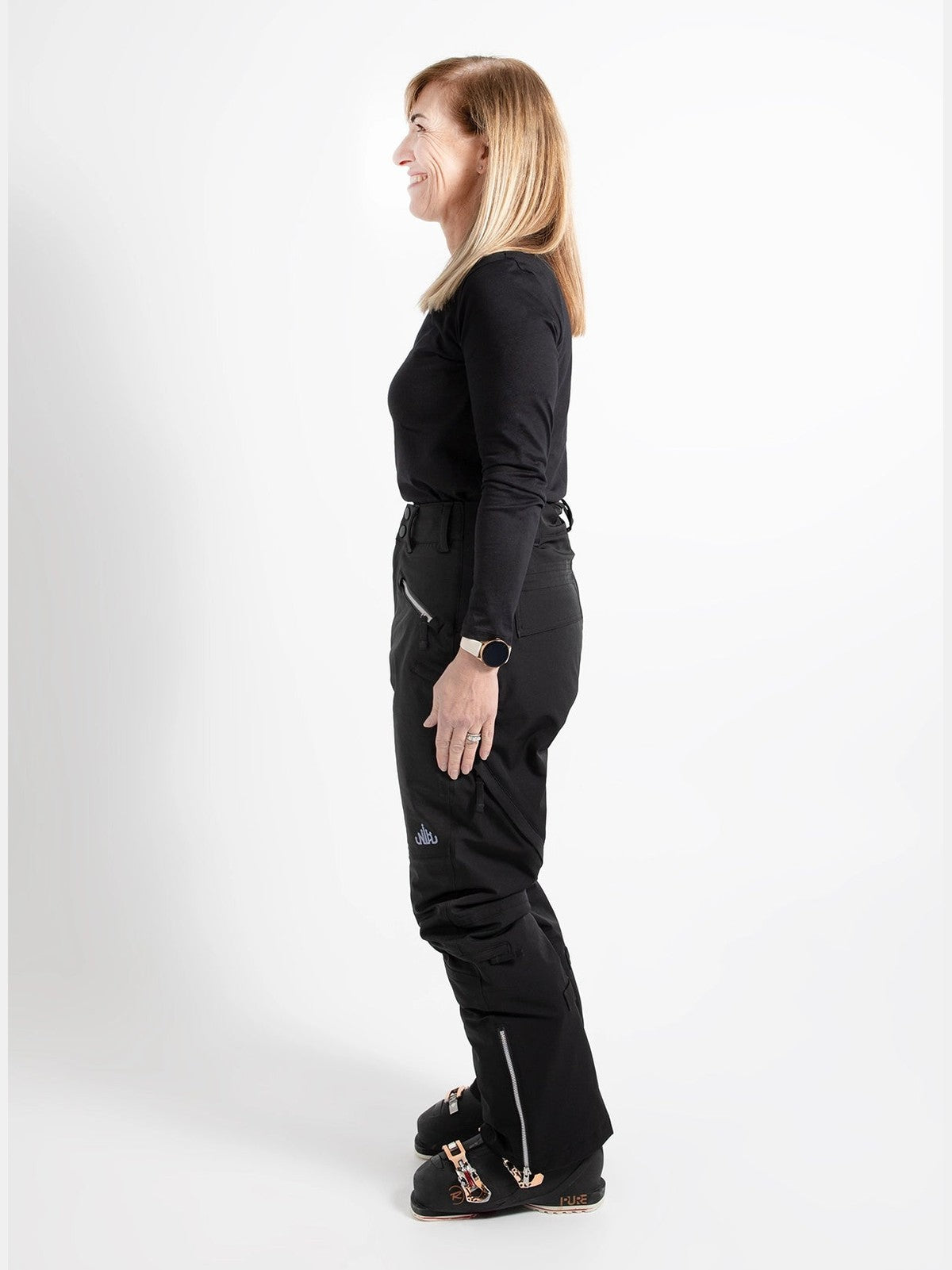 Made from a 4-way stretch material that gives you the freedom to move without worry on the snow. Our side stretch panels allow for easy dressing, and move with you on the mountain and adapt to your needs.